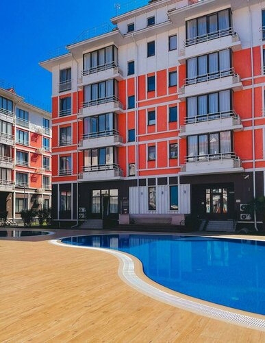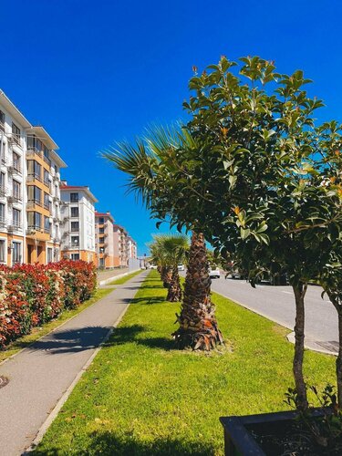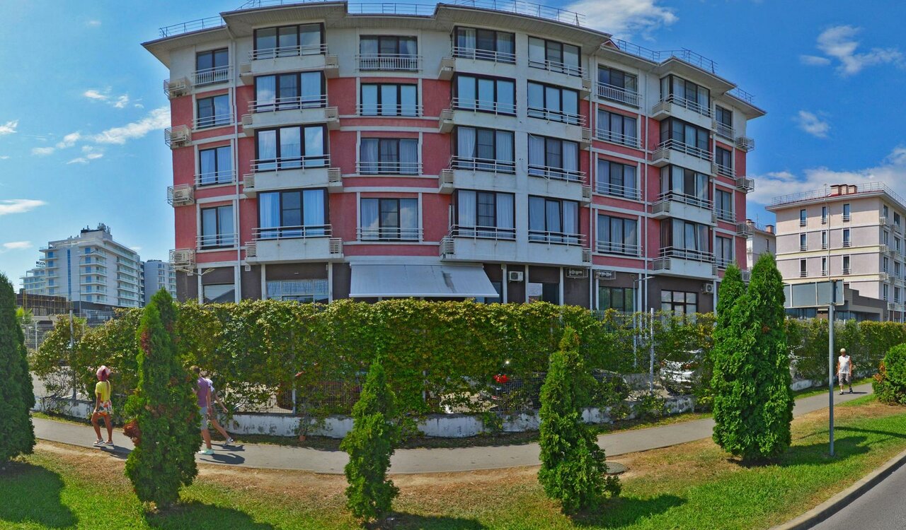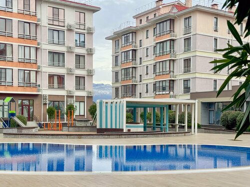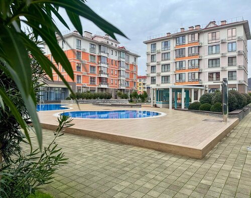 - 3 мин пешком от моря. На территории комплекса своё кафе, фитнес зал, бассейн, аптека, детская и спортивная площадки, парковка, охрана, закрытая Территория
